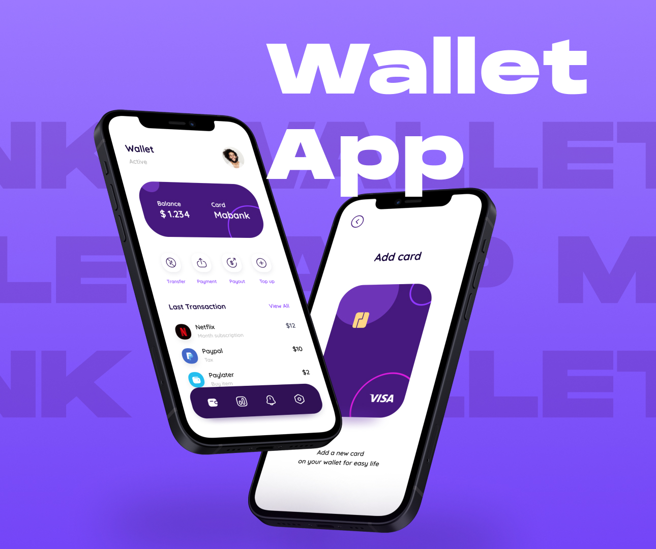 A sleek and contemporary wallet app user interface concept for easy card management and digital payments.