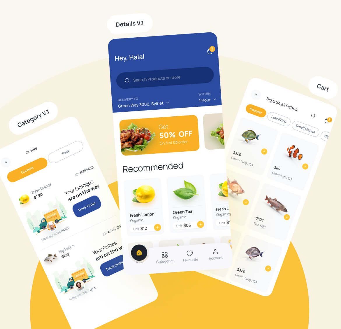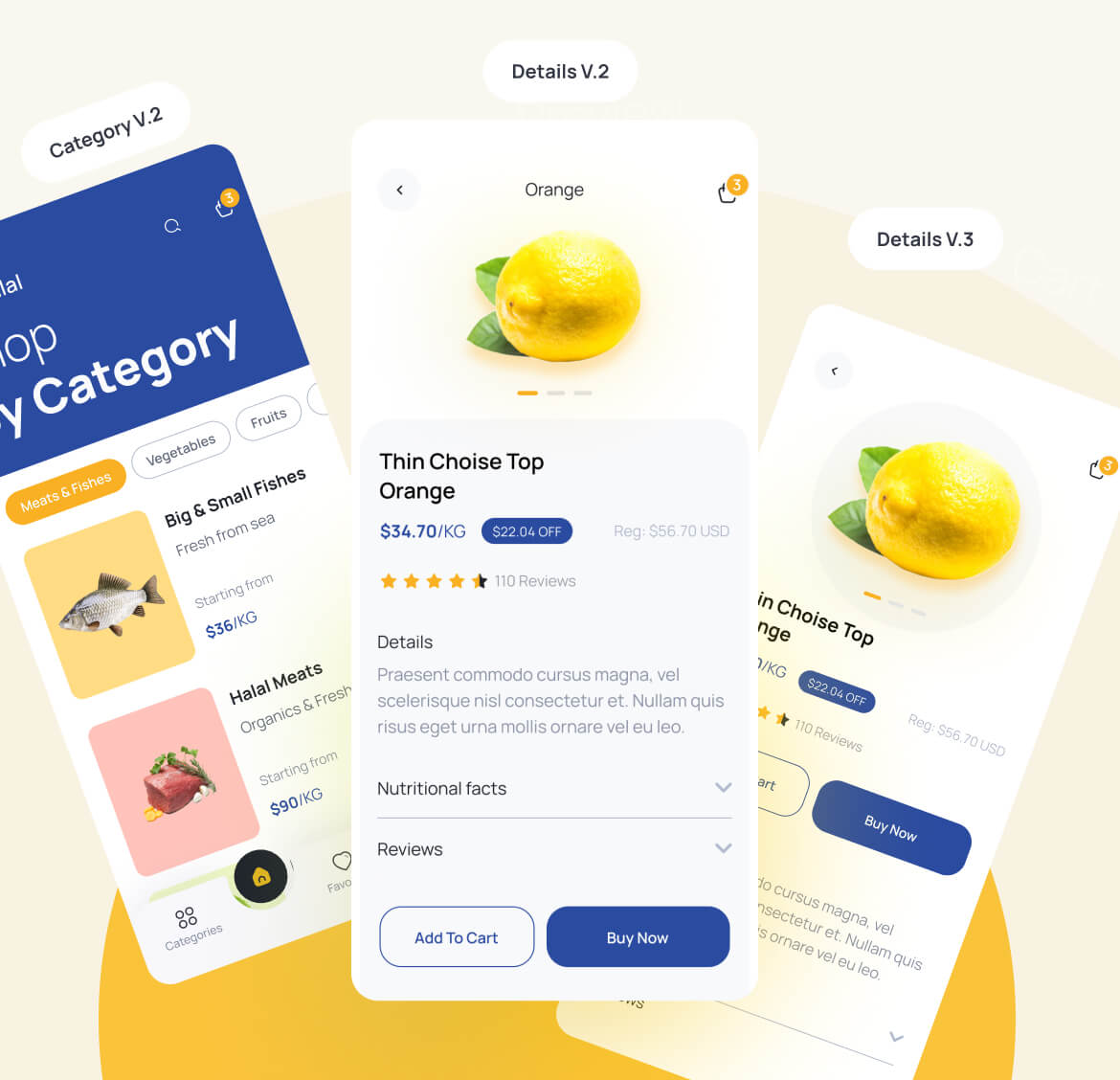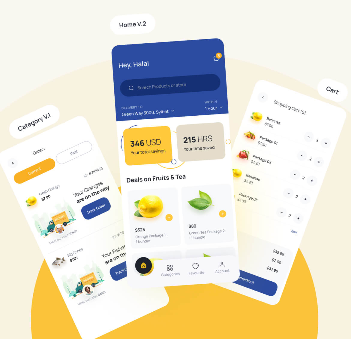 The Grocery Shop mobile App UI is ideal for startups in the field of grocery, food service delivery, chain supermarkets or eCommerce companies looking to establish a strong mobile presence. If you’re launching an entirely new product or revamping an existing one this UI kit offers an excellent foundation for creating an efficient, user-friendly, and visually engaging shopping experience on mobile devices.